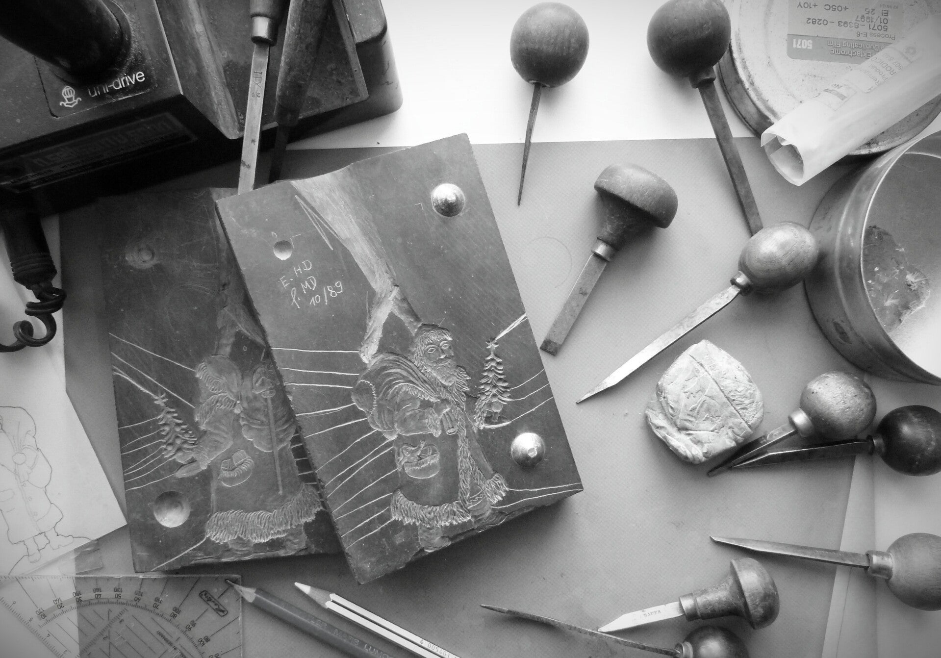 Zinnfiguren werden gegossen, traditionel in Gußformen aus Schiefer. Da die Anzahl meiner selbst gravierten Formen überschaubar ist, beziehe ich die meisten Figuren von anderen Zinngießern - natürlich immer blank, also unbemalt.